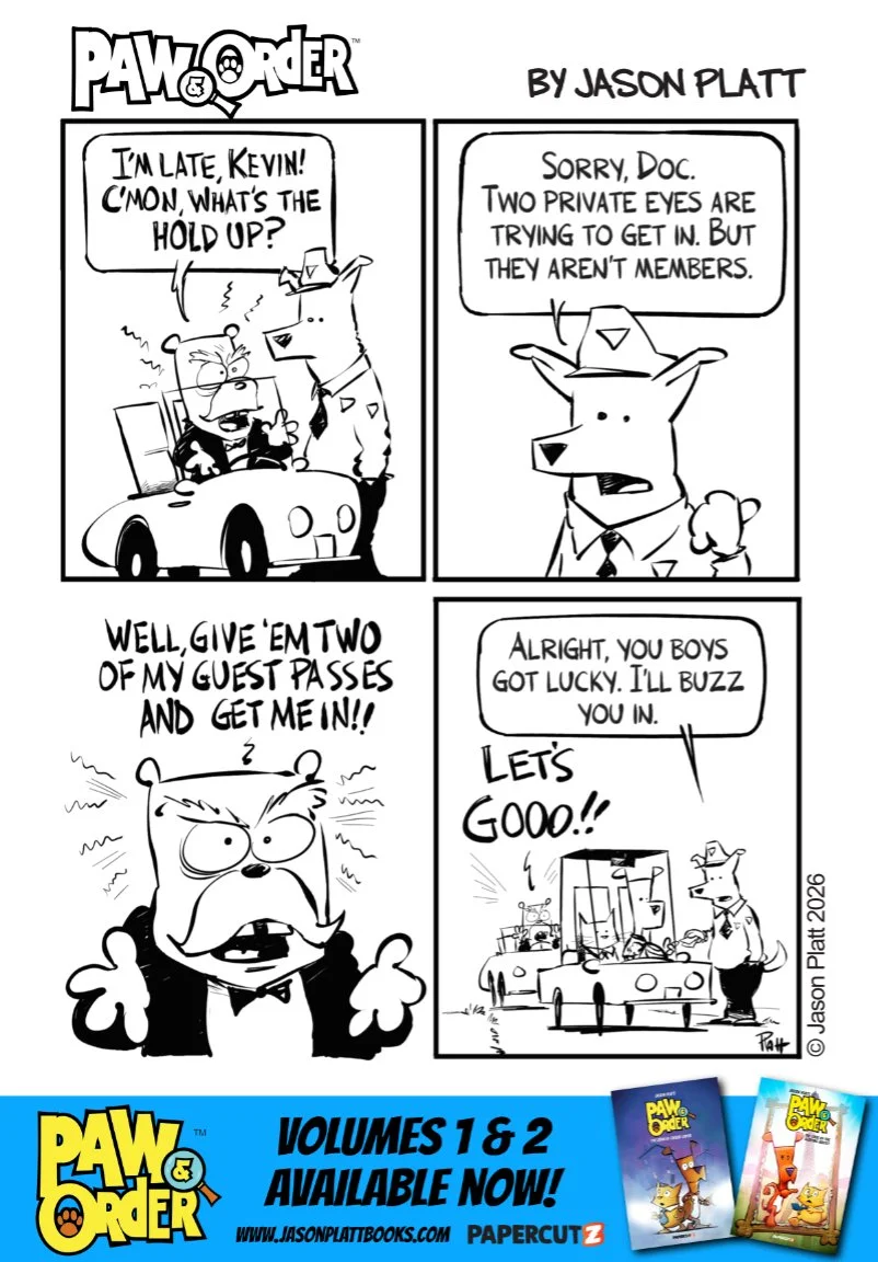 Jason Platt February 19, 2026 Comic Paw & Order: Turkey Stuffing Episode 38 Jason Platt February 19, 2026 Comic Purrlock and Marlowe catch a break.