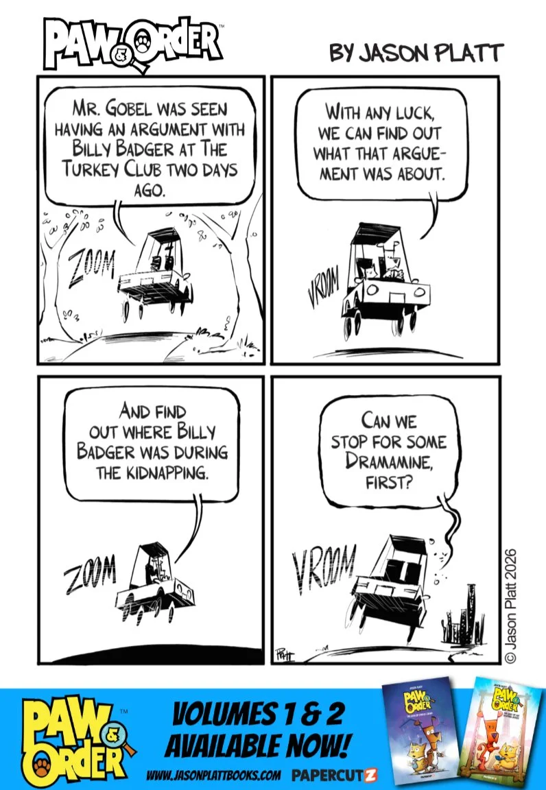 Jason Platt February 2, 2026 Comic Paw & Order: Turkey Stuffing Episode 34 Jason Platt February 2, 2026 Comic Paw & Order: Turkey Stuffing Episode 34, by Jason Platt Purrlock and Marlowe make their way to the Turkey Club.