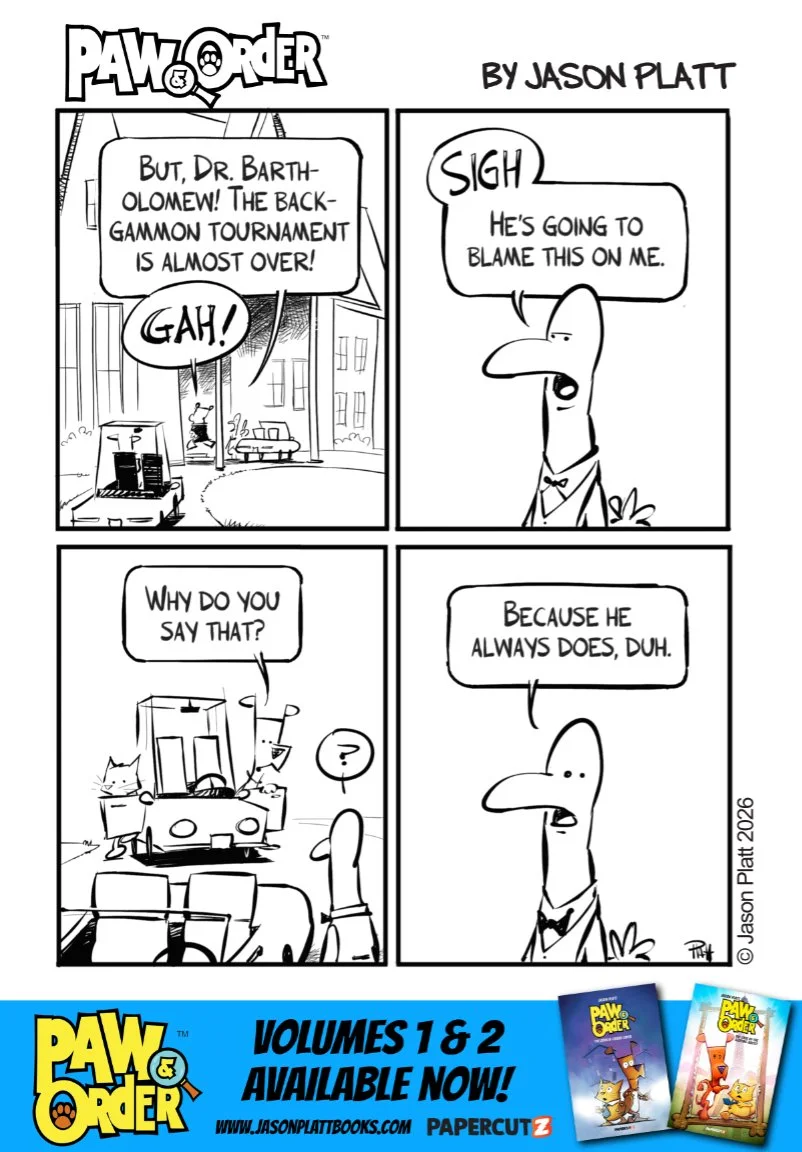 Jason Platt February 27, 2026 Comic Paw & Order: Turkey Stuffing Episode 40 Jason Platt February 27, 2026 Comic Paw & Order: Turkey Stuffing Episode 40, by Jason Platt Blame Game.