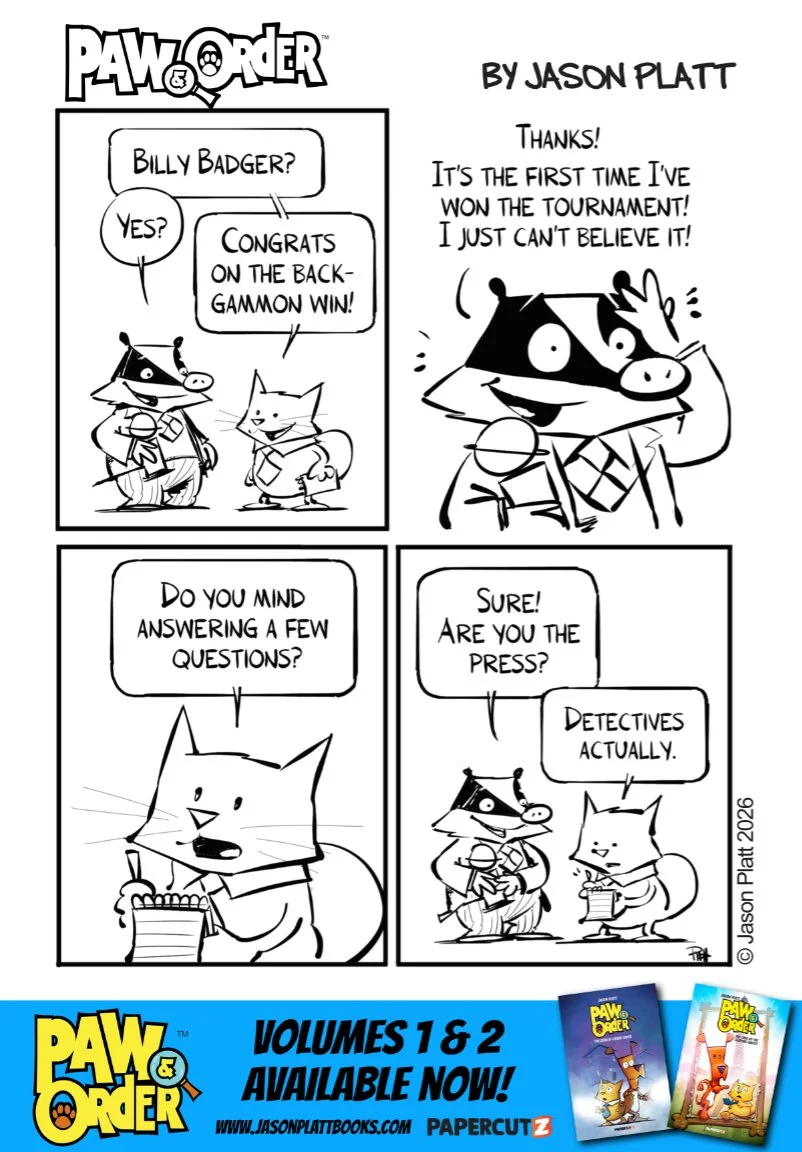 Jason Platt April 8, 2026 Comic Paw & Order: Turkey Stuffing Episode 50 Jason Platt April 8, 2026 Comic Paw & Order: Turkey Stuffing Episode 50, by Jason Platt Purrlock, keeping things straight.