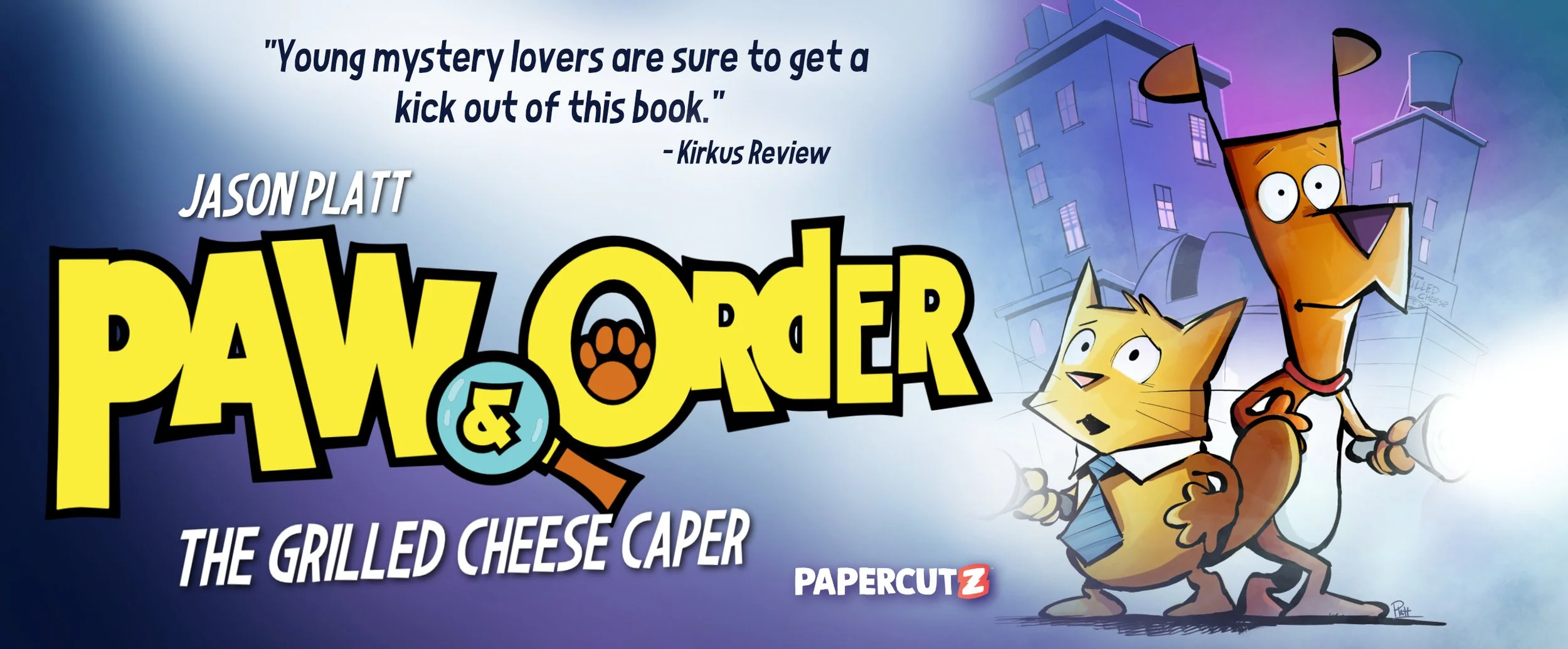 The annual Grilled Cheese Festival is ruined when someone steals all the sandwiches, and it's up to Paw & Order detectives, Purrlock and Marlowe, to figure out who did it! Was it Jinny Giraffe, who was upset that the Grilled Cheese Festival kept her from putting on her Art Festival? Was it Coach Allan Alligator, who was banned from the festival the year before? OR was it Purrlock's arch nemesis, Meowiearty, who was behind the dastardly deed? In Jason Platt's funny and delightfully illustrated book, readers will have the opportunity to put their Paw & Order detective hat on and try to solve the crime alongside Purrlock and Marlowe!